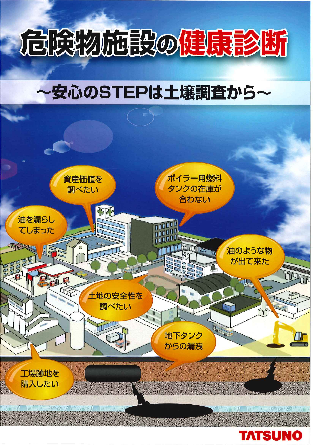あたなの土地活用の際のお手伝いはタツノにおまかせください。 ◆不動産取引 ◆汚染発生 ◆リスク回避 ◆詳細はカタログをダウンロードしてご覧下さい。