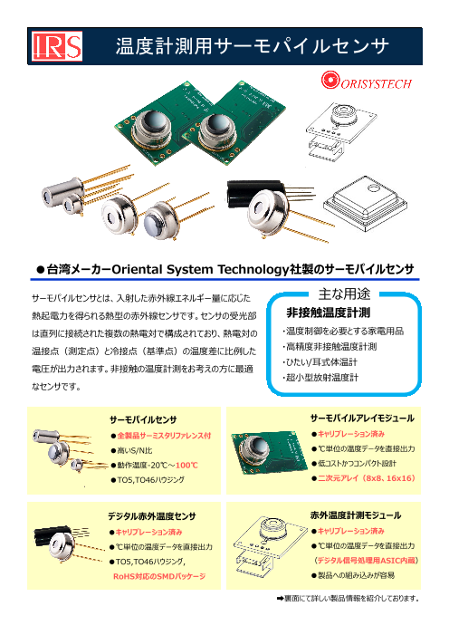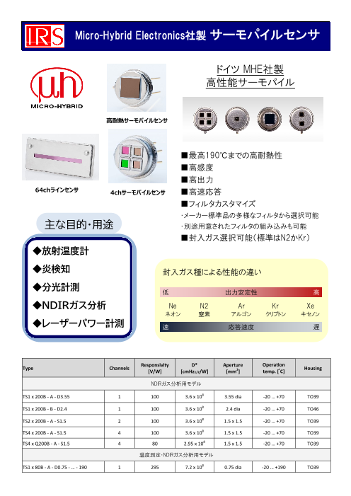 高性能(高感度、高耐熱、高出力、高速応答)サーモパイルセンサ の紹介。標準的な1ch...