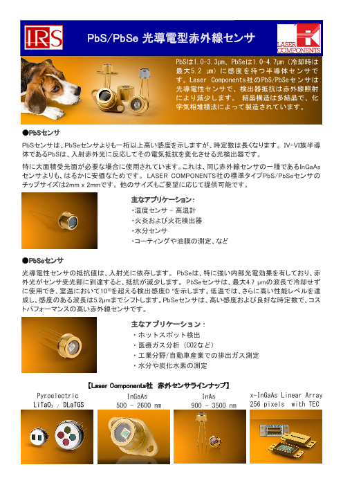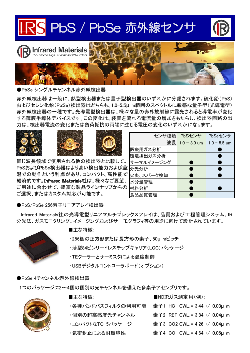 PbSは1.0-3.3μm、PbSeは1.0-4.7μm(冷却時は最大5.2 μm)...