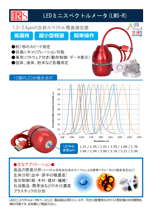 LMS-Rは、近赤外域1.3〜2.4μmの 近赤外域スペクトル分析用の超小型軽量測定...
