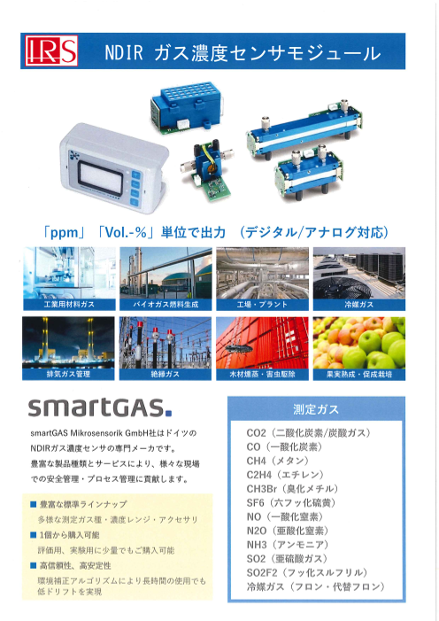 ●特徴 ■多数の標準対応ガスを用意 CO2などの環境ガスだけではなく、排出の規制対象となっている地球温暖化ガスやオゾン層破壊ガスなどのラインナップもあり、単ガスモニタは速やかに導入が可能 ■複数ガスの同時計測 客先要望に合わせて、ひとつのモジ...