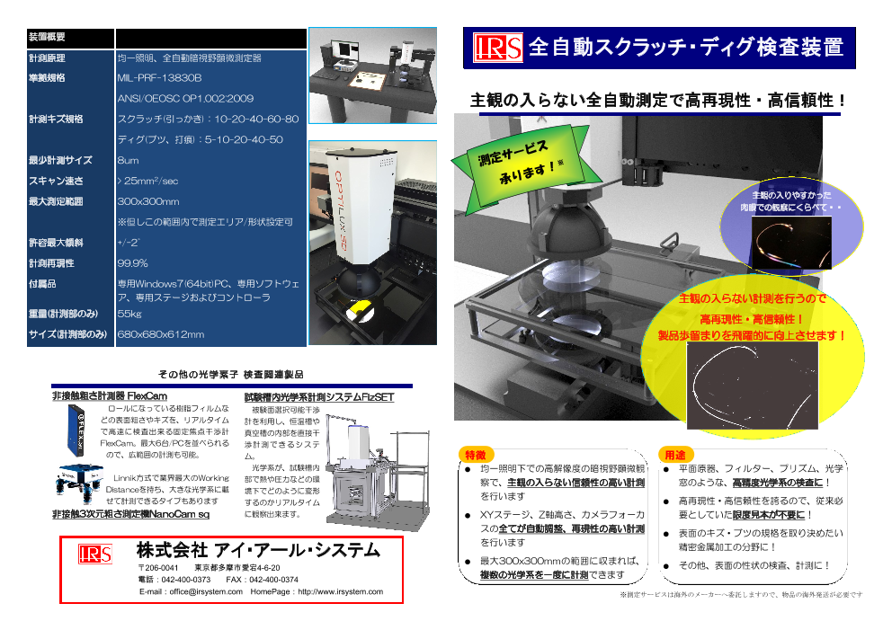 全自動スクラッチ・ディグ検査装置