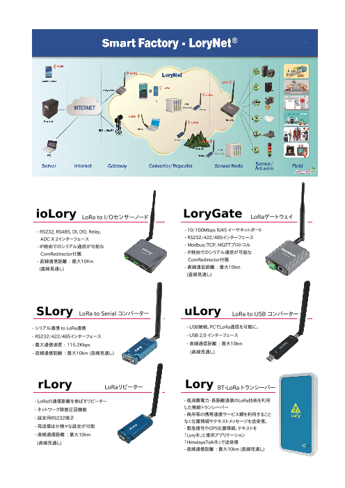【掲載内容】 ○ioLoyu LoRa to I/Oセンサーノード ○LoryGate LoRaゲートウェイ ○SLory LoRa to Serial コンバータ ○uLory LoRa to USB コンバータ ○rLory LoRaリピー...