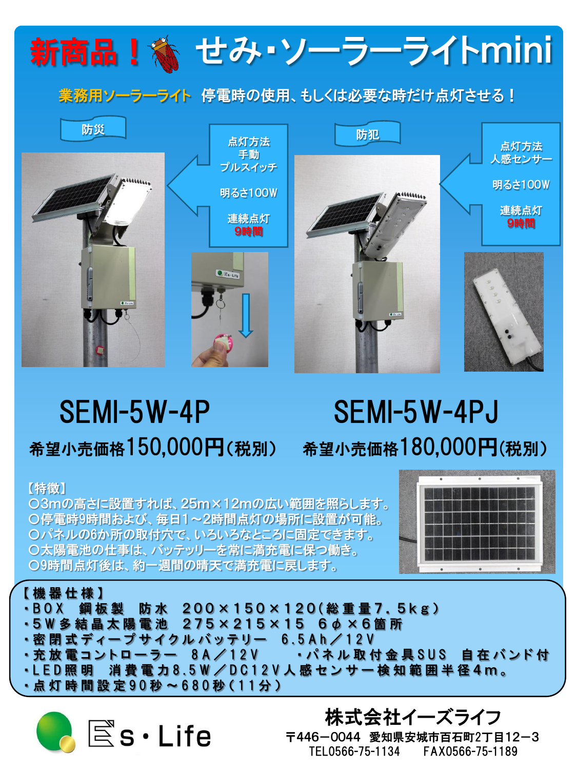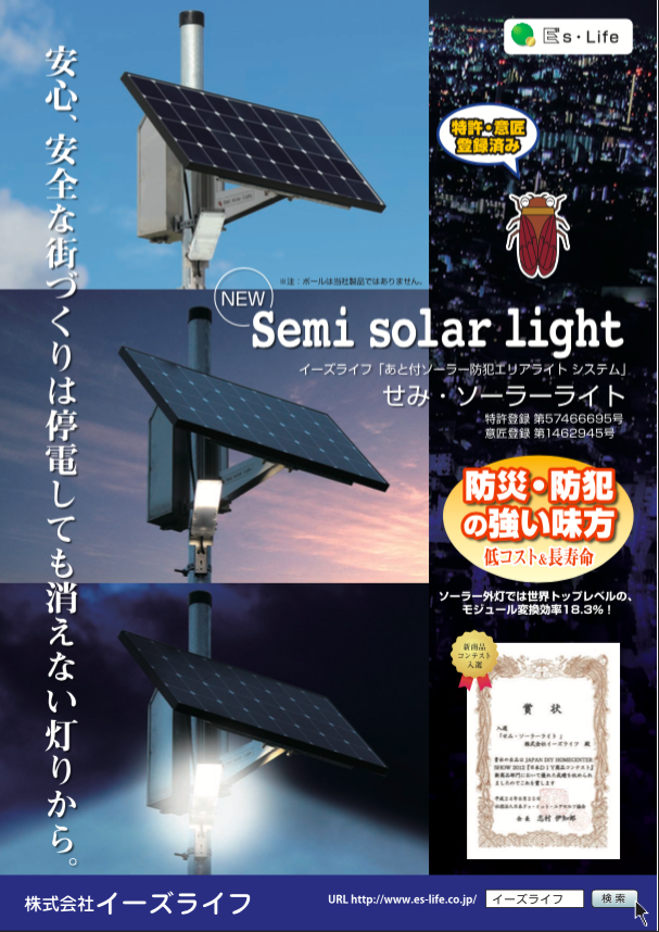 BCP(事業継続計画)にすべての機種が適応。 小さいシステムだから、ローコスト、簡単設置、移動もラクラク。 ソーラーの蓄電だから、商用電源の引き込み工事は一切不要。 使い方もスイッチひとつでかんたん利用、ソーラーライトは全自動。 シンプル構造で、...