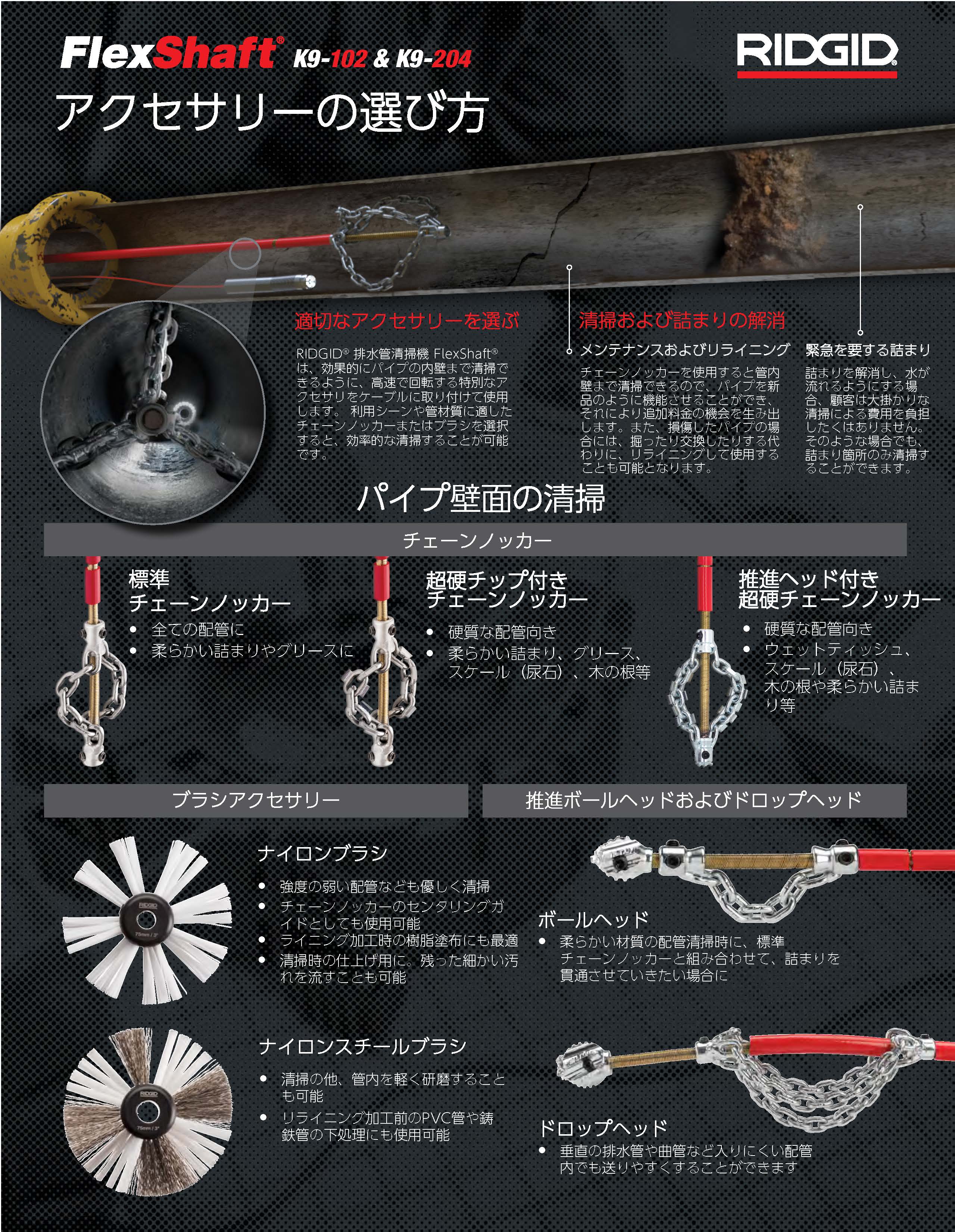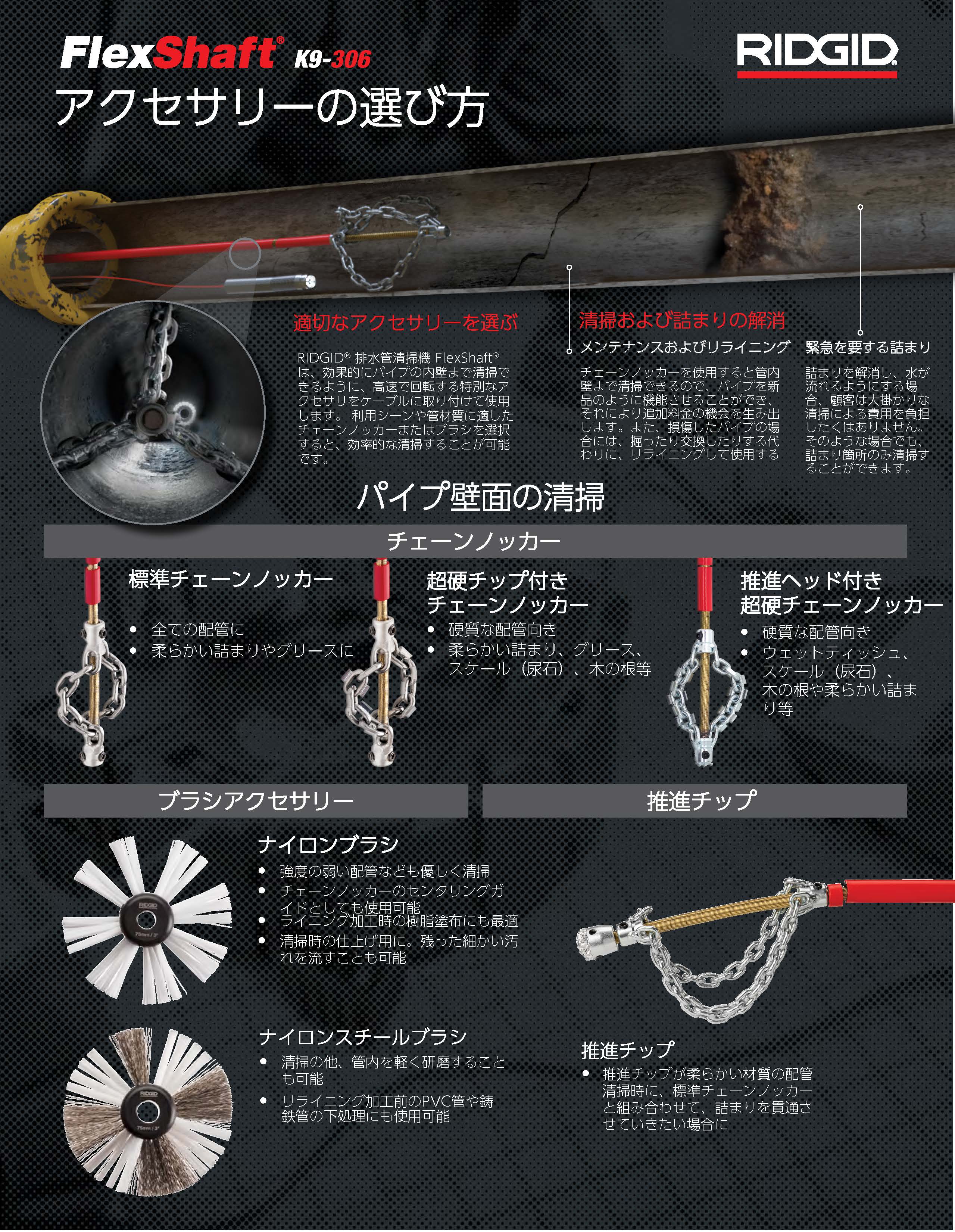 詰まりの種類に応じたアクセサリーの選定方法をご紹介