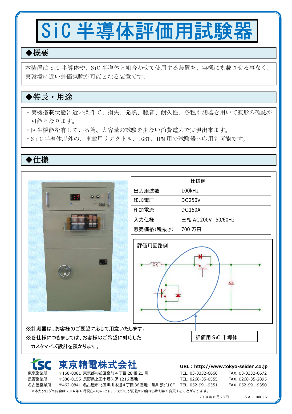 SiC半導体や、SiC半導体と組合わせて使用する装置を、実機に搭載させる事なく、実環境に近い評価試験が可能となる装置です。