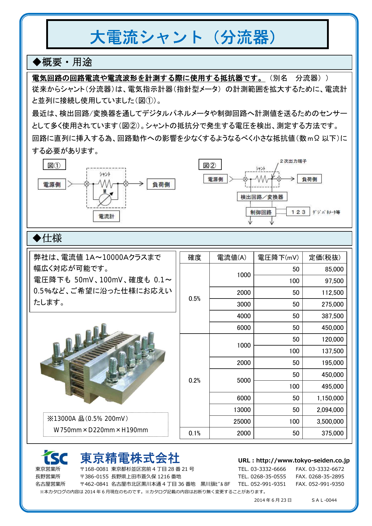 電気回路の回路電流や電流波形を計測する際に使用する抵抗器です。(別名 分流器)