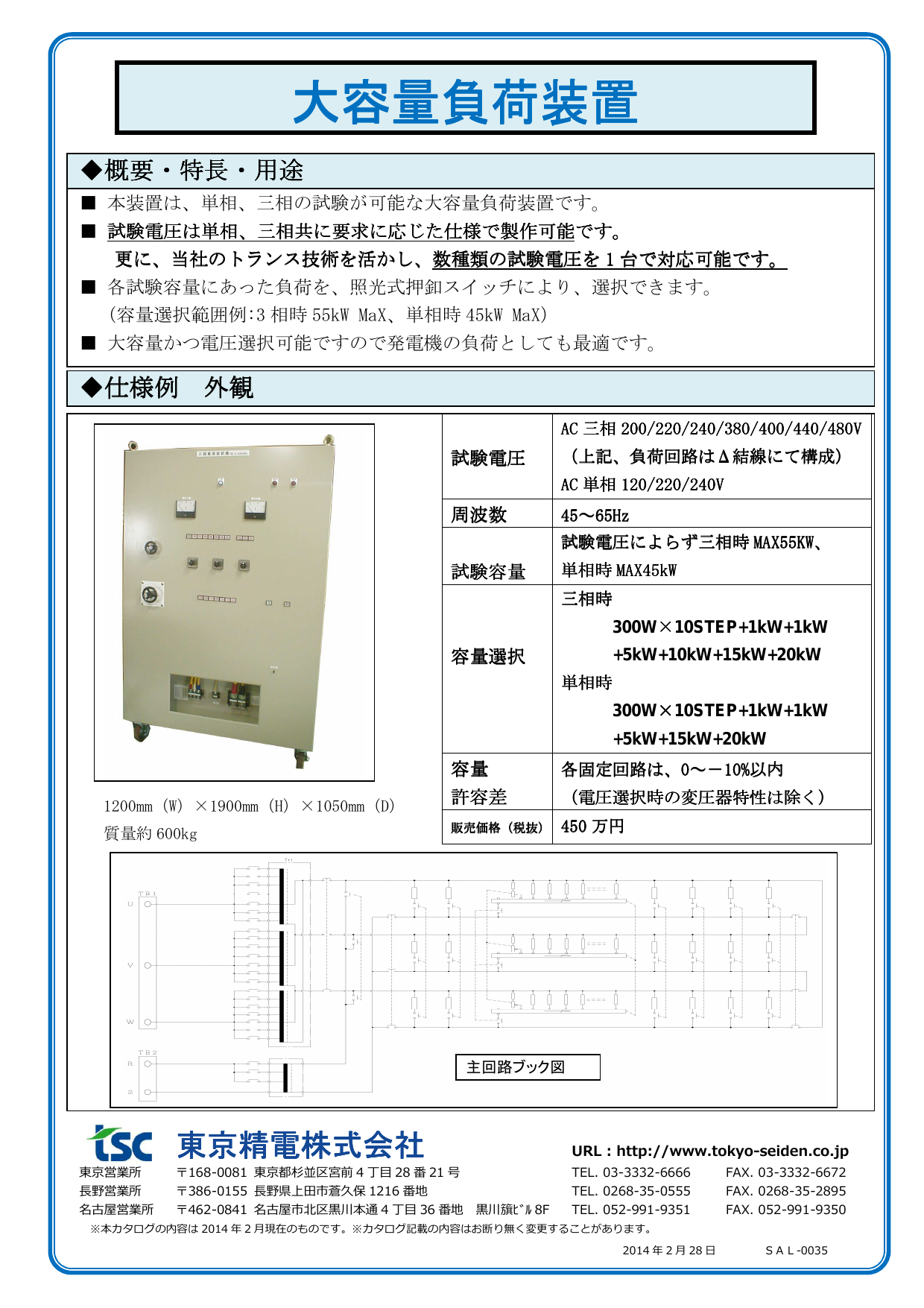 本装置は、単相、三相の試験が可能な大容量負荷装置です。