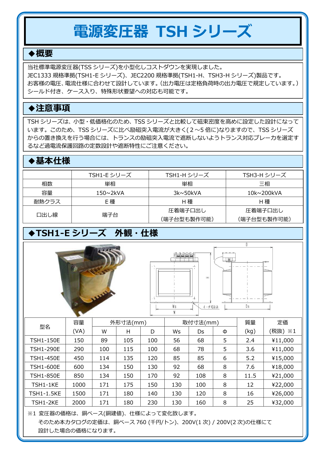 当社標準電源変圧器(TSS シリーズ)を小型化しコストダウンを実現しました。