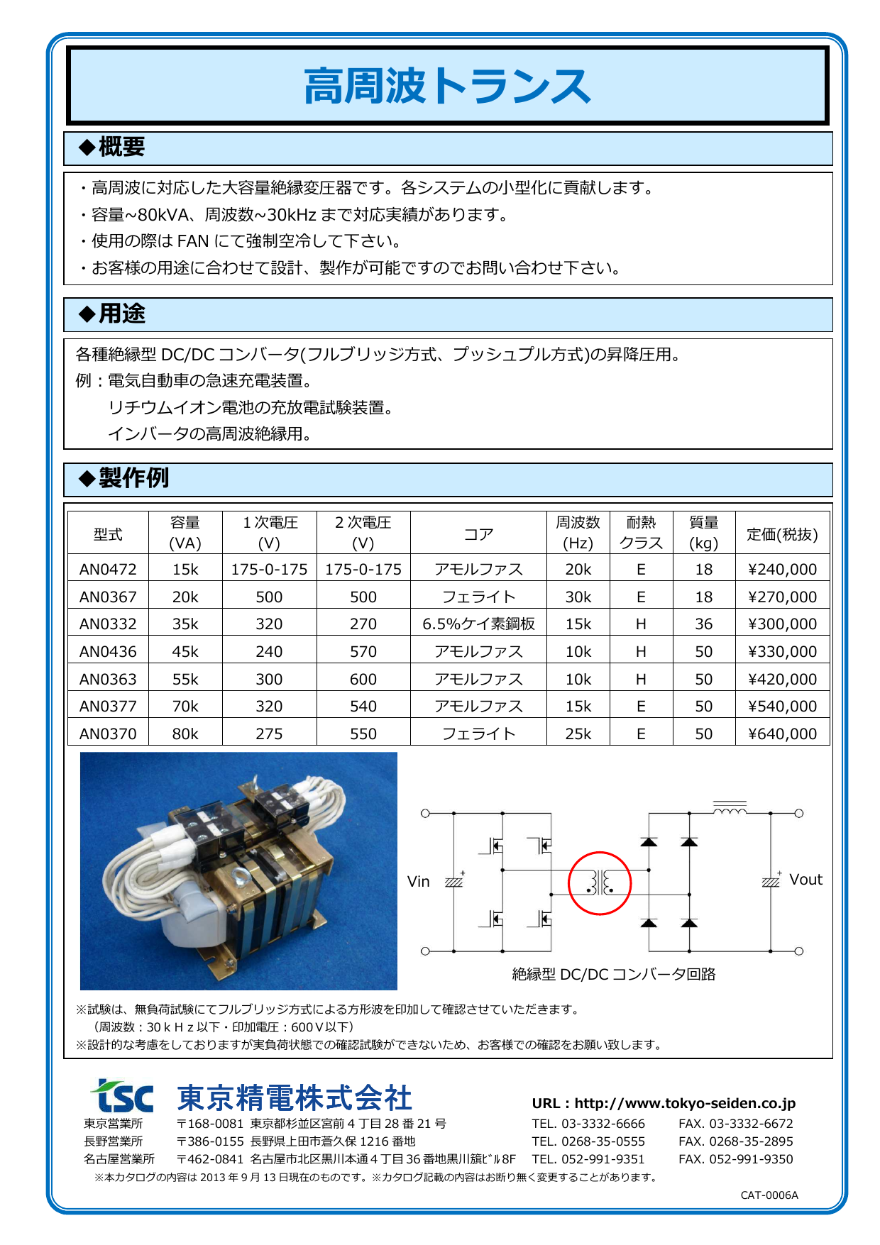 高周波に対応した大容量絶縁変圧器です。各システムの小型化に貢献します。