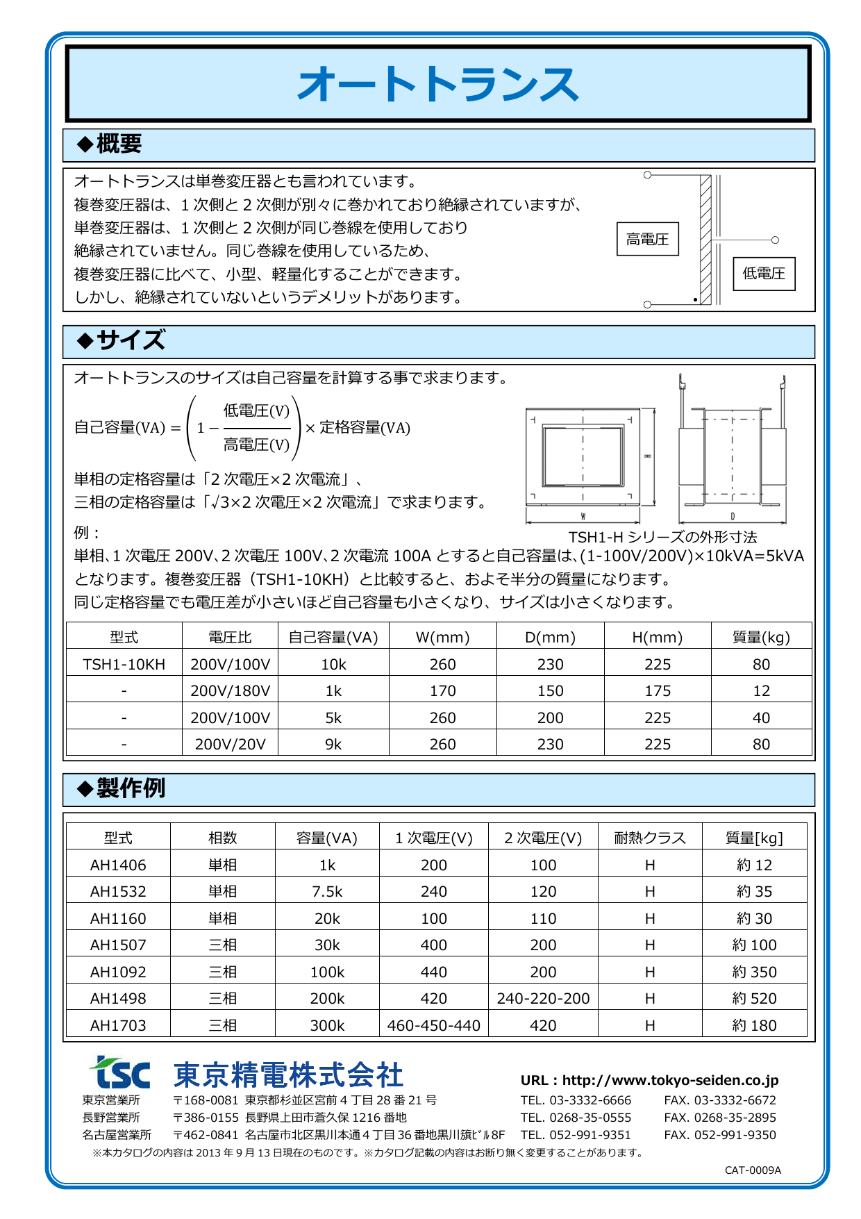 単巻変圧器とも言われているオートトランスです。絶縁されていないというデメリットがありますが、複巻変圧器に比べて、小型、軽量化することができます。