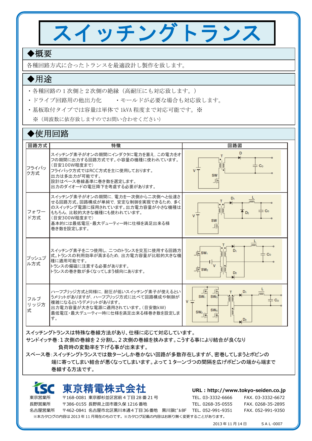 各種回路方式に合ったトランスを最適設計し製作を致します。