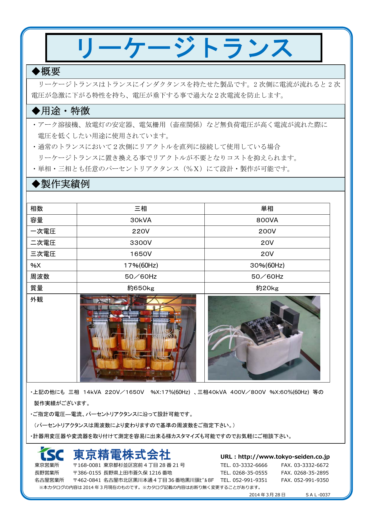 リーケージトランスはトランスにインダクタンスを持たせた製品です。