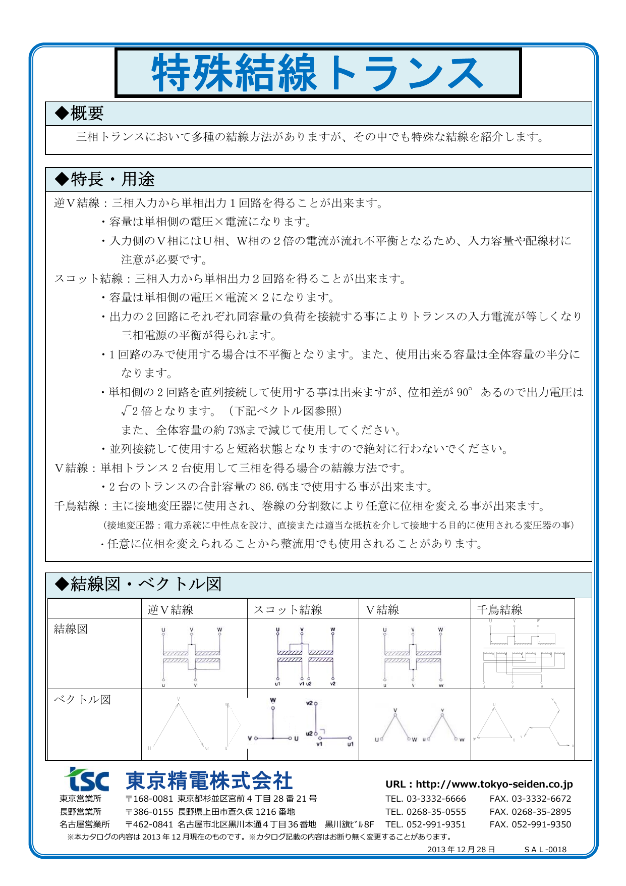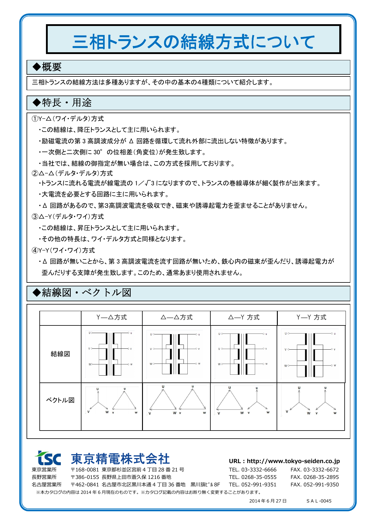 三相トランスにおいて多種の結線方法がありますが、その中でも特殊な結線方式のトランスです。
