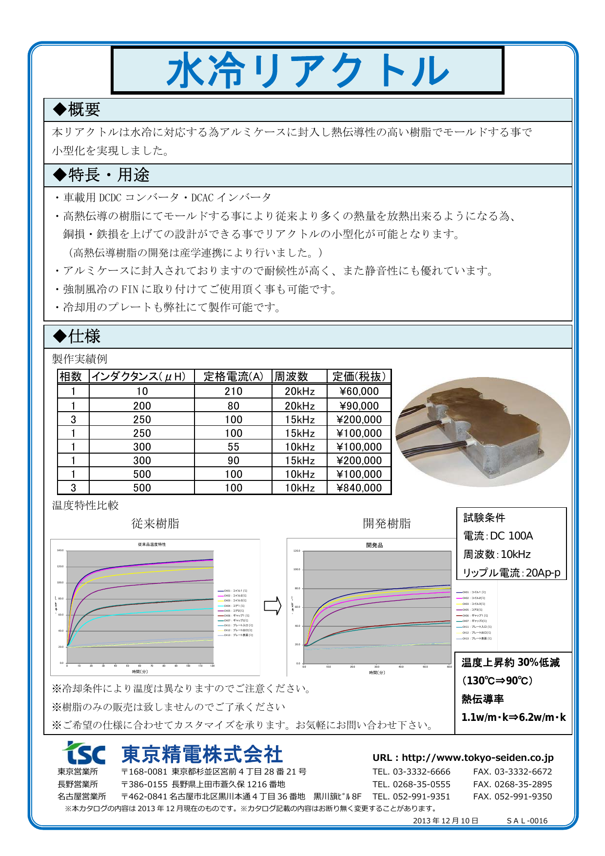 水冷に対応する為アルミケースに封入し、熱伝導性の高い樹脂でモールドする事で小型化を実現したリアクトルです。
