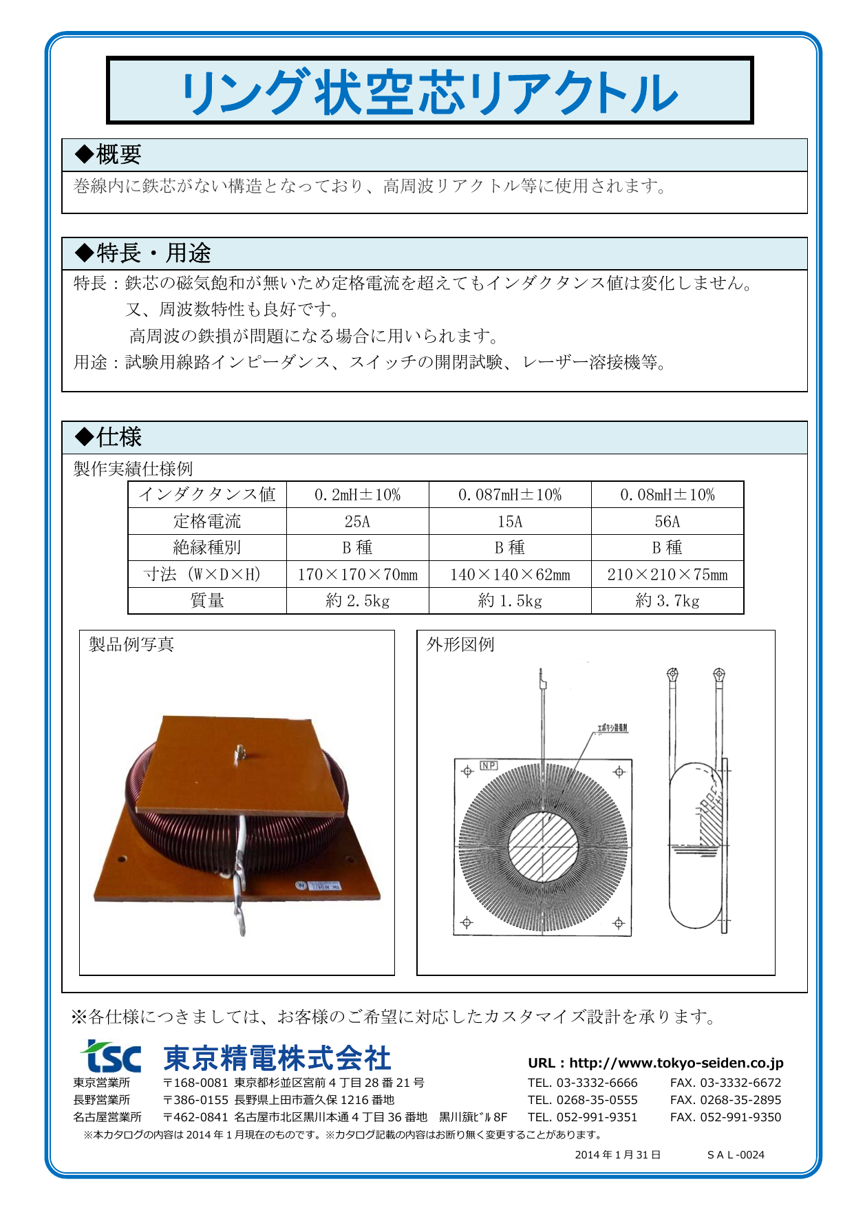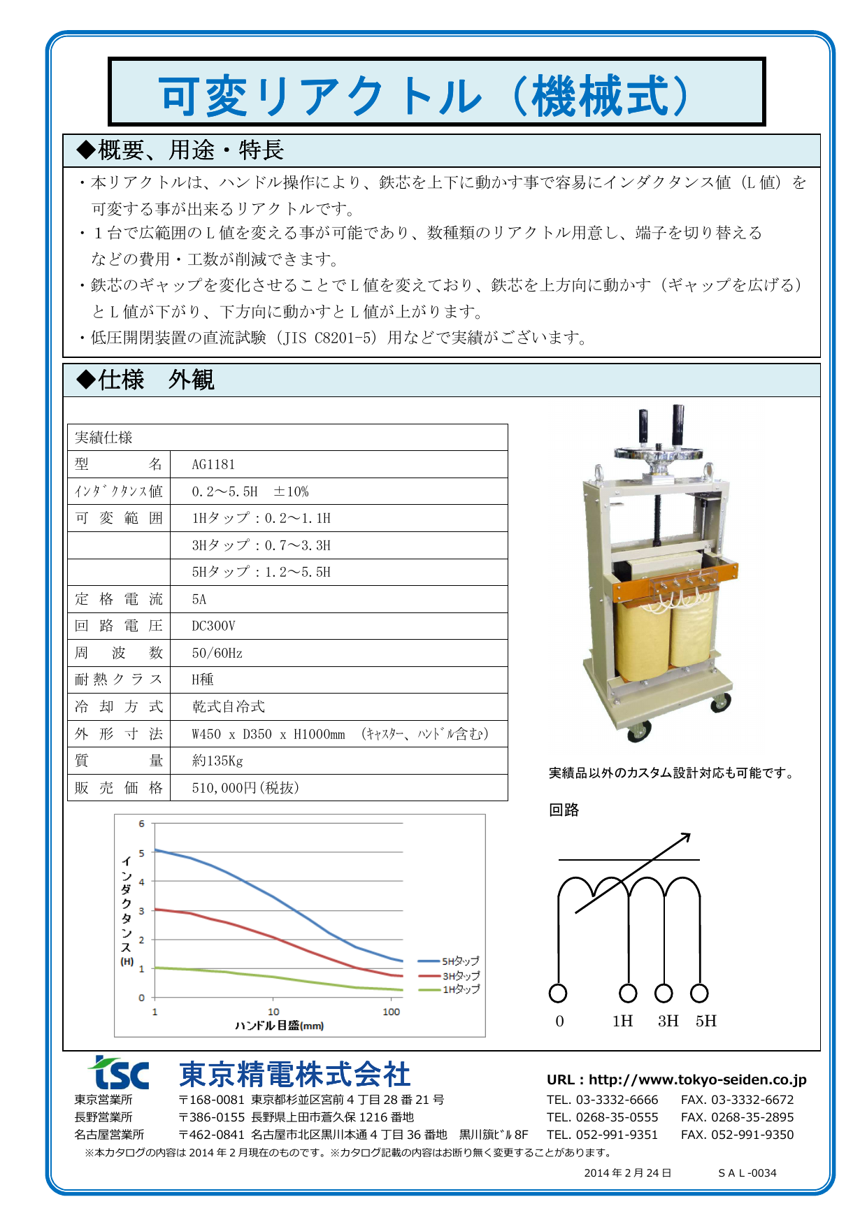 ハンドル操作により、鉄芯を上下に動かす事で容易にインダクタンス値を可変する事が出来るリアクトルです。