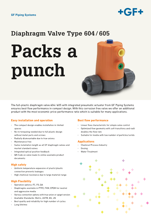 The full-plastic diaphragm valve 604/605 with integrated pneumatic actuator from GF Piping Systems ensures best flow performa...