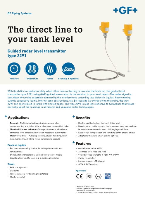 With its ability to read accurately when other non-contacting or invasive methods fail, the guided level transmitter type 2291 ...