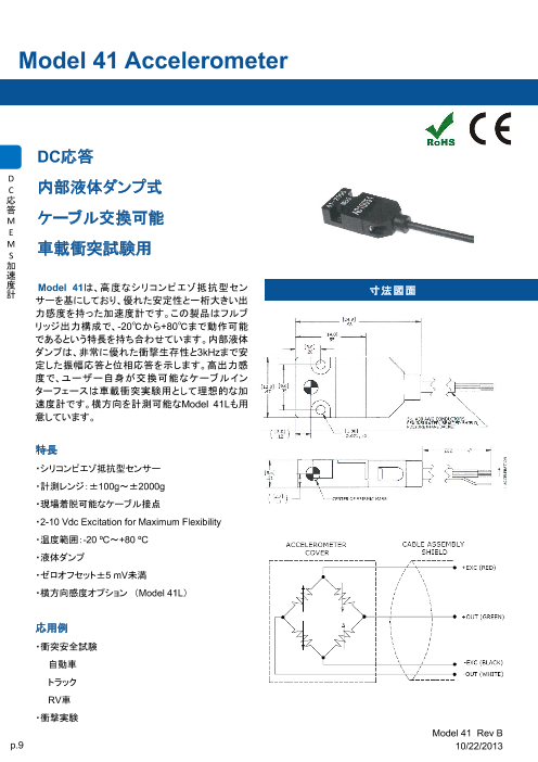 Model 40Bは、小型ピエゾ抵抗型加速度計センサです。