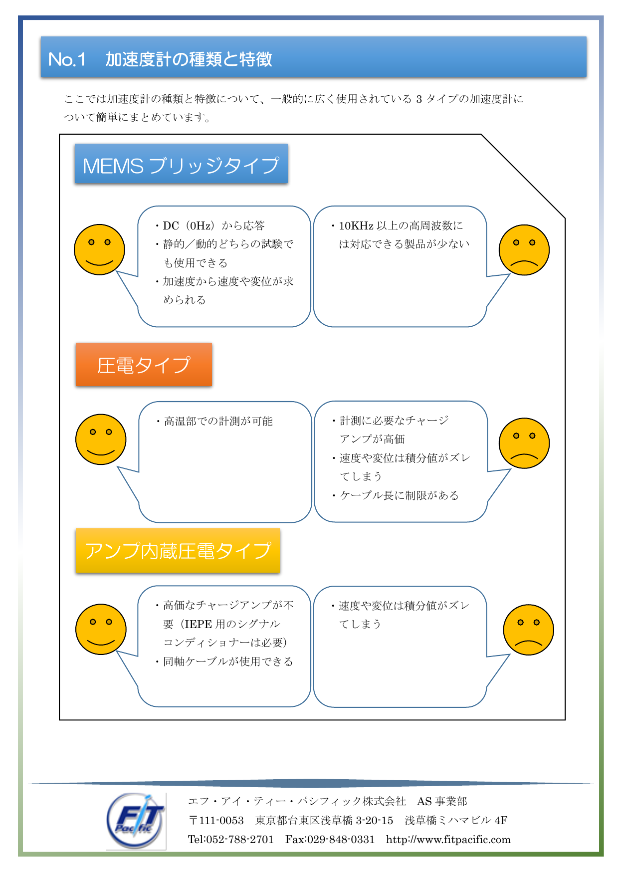 「MEMSブリッジタイプ」や「圧電タイプ」など、加速度計の種類が良く分かる!