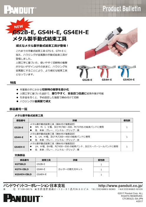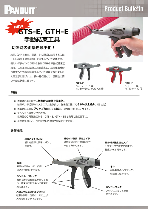 これまでの手動式結束工具 GTS-E、GTH-E に加え、ハウジングが金属製の手動式結束工具が登場しました。人間工学に基づいた、使いやすく切断時の衝撃が少ないデザインはそのままに、ハウジングを金属製にすることにより、より頑丈な結束工具となっています。 ...