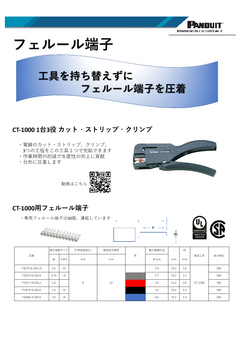 ◆CT-1000 1台3役 カット・ストリップ・クリンプ ・電線のカット・ストリップ、クリンプ、 3つの工程をこの工具1つで完結できます ・作業時間の削減で生産性の向上に貢献 ・台形に圧着します ◆CT-1000用フェルール端子 ・...