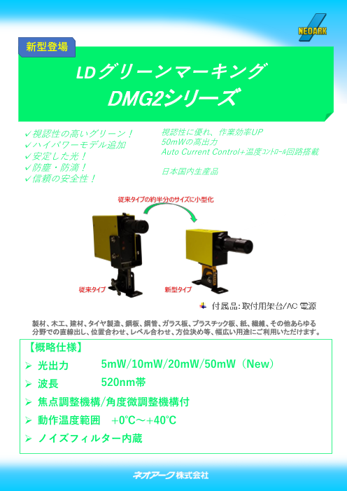 当社従来型レーザヘッドと比較し約 1/2 まで小型・軽量化 ・多彩な機能を盛り込んだ新型コントローラ ・紫外~近赤外の各種製品ラインアップ ・ 製造・調整・検査等、一環して日本国内自社工場内で実施 ◆詳細は、カタログをダウンロードしてご覧くだ...