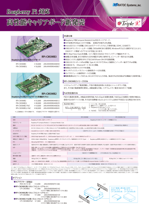 RaspberryPi Compute Module3(CM3)対応キャリアボード。 HATコネクタ搭載。microSDカードスロット搭載でCM3 Liteのブートディスクとして使用可能。RTCを搭載しコイン電池でのバックアップにも対応。