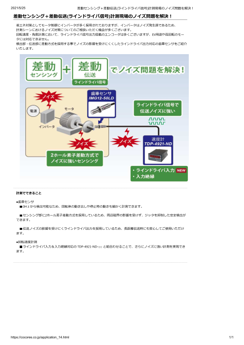省エネ対策でモータ制御にインバータが多く採用されておりますが、インバータはノイズ発生源でもあり、 計測でノイズ対策のご相談をいただく機会が多くございます。 回転速度・角度計測において、ラインドライバ信号出力搭載のエンコーダは多くございますが、 EV...
