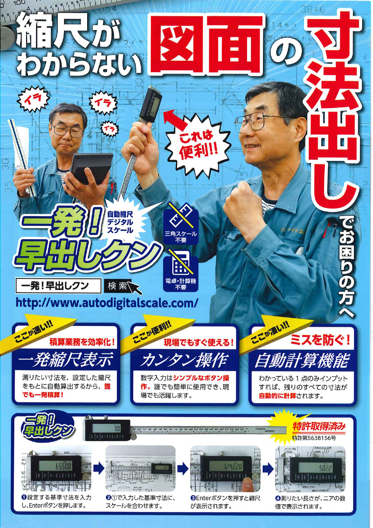 自動縮尺デジタルスケール 一発!早出しクン カタログのご案内です。