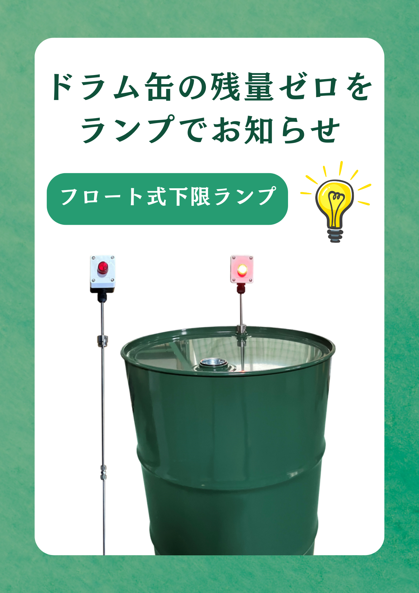 フロートスイッチで簡単チェック! ドラム缶の中身の空をランプが知らせるフロート式下限...