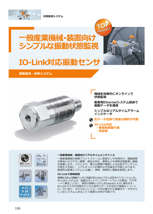 あらゆる要求に最適なソリューション ◆掲載内容 ・ISO10816規格に準拠した全体的な機械振動監視。早期検出で損傷の拡大を防ぎ、機械の耐用年数を伸ばします。 ・振動特性によって異なる影響要因に基づき、潜在的な故障原因を早期に検出します...