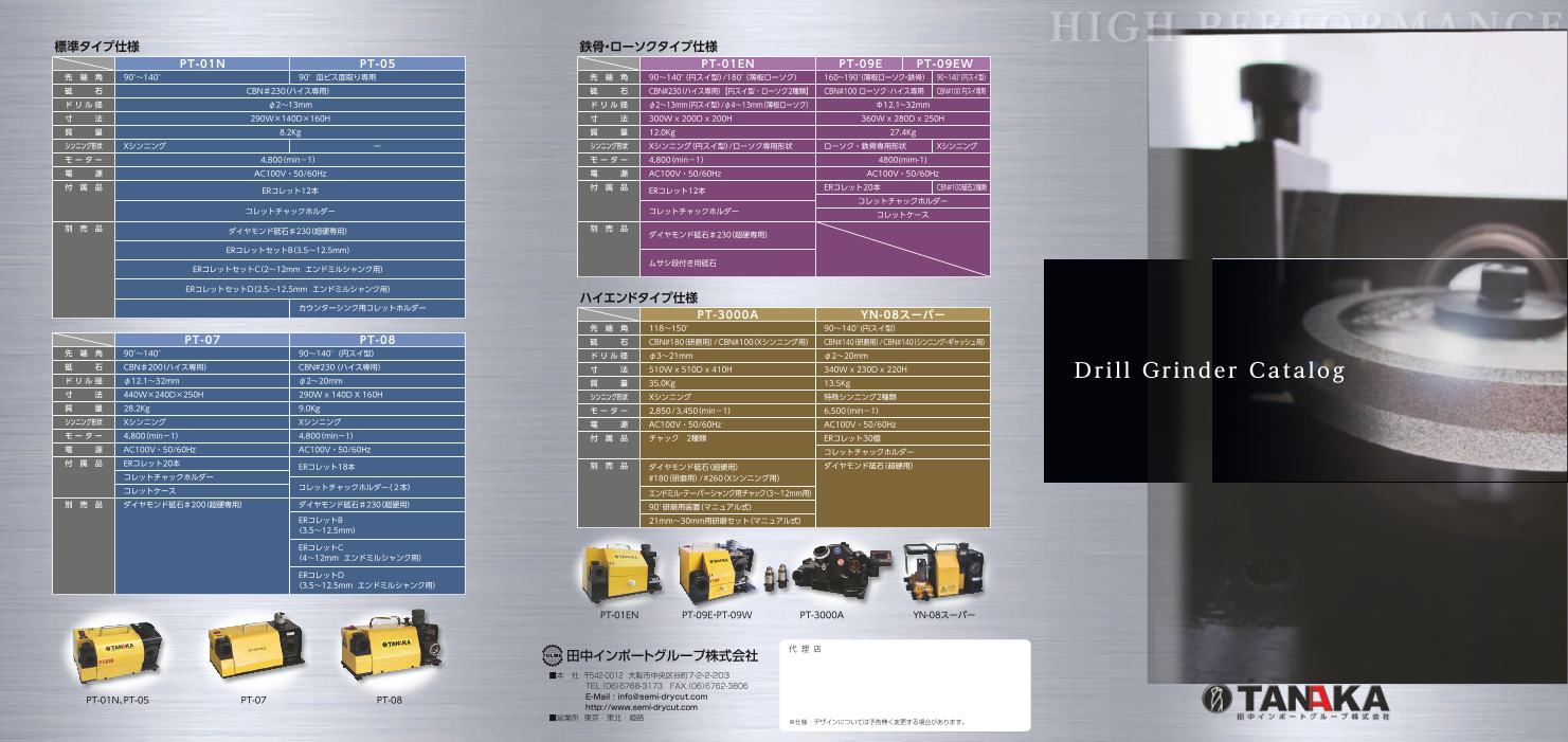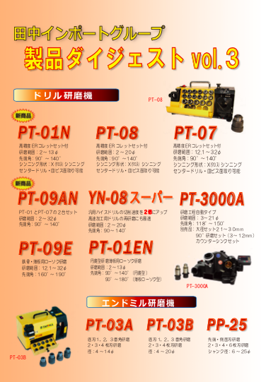 エンドミル研磨機、タップ研磨機、切断機、ブローチボーラー研磨機各種の総合カタログです。