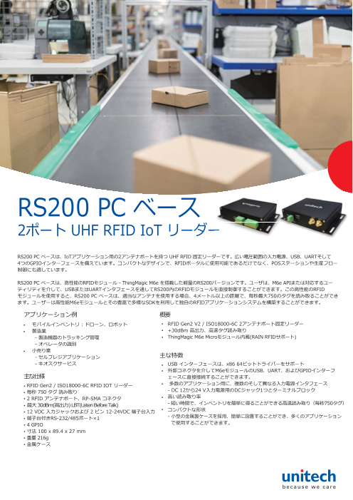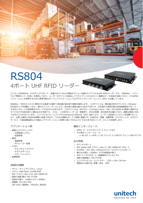 ユニテック・ジャパン RS200およびRS804 UHF RDIDリーダー用のフラッ...