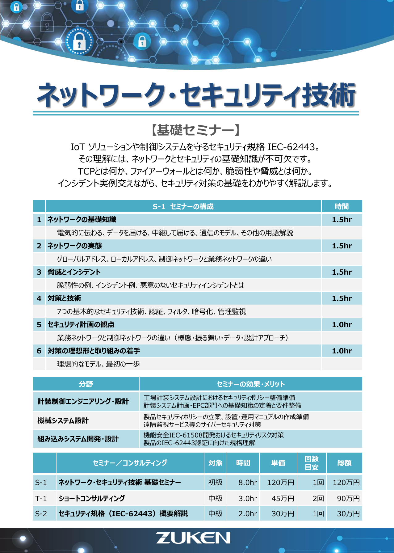 IoT ソリューションや制御システムを守るセキュリティ規格 IEC-62443。 その理解には、ネットワークとセキュリティの基礎知識が不可欠です。 TCPとは何か、ファイアーウォールとは何か、脆弱性や脅威とは何か。 インシデント実例交えながら、セキ...