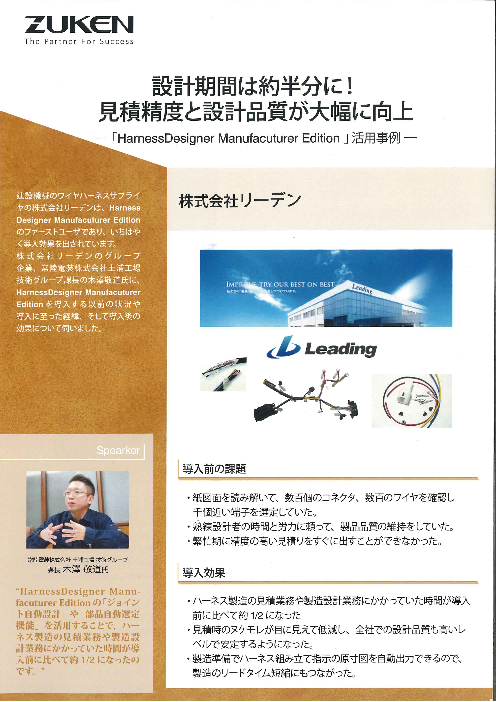 電子データを活用した高速・高精度のハーネス見積り/製造設計システム『HarnessDesigner Manufacuturer Edition』。 ワイヤハーネスサプライヤの株式会社リーデンでは、『HarnessDesigner Manufacutur...