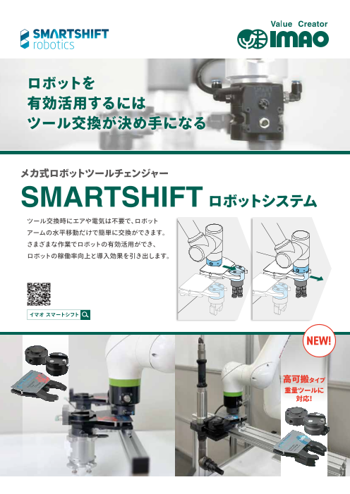 ロボットを有効活用するには、さまざまな作業ができるように多くのツールが必要になります。 そして効率良く生産を行うためには、ツール交換を素早く行うことが求められます。 『SMARTSHIFT(スマートシフト)ロボットシステム』は、 ロボットアーム...