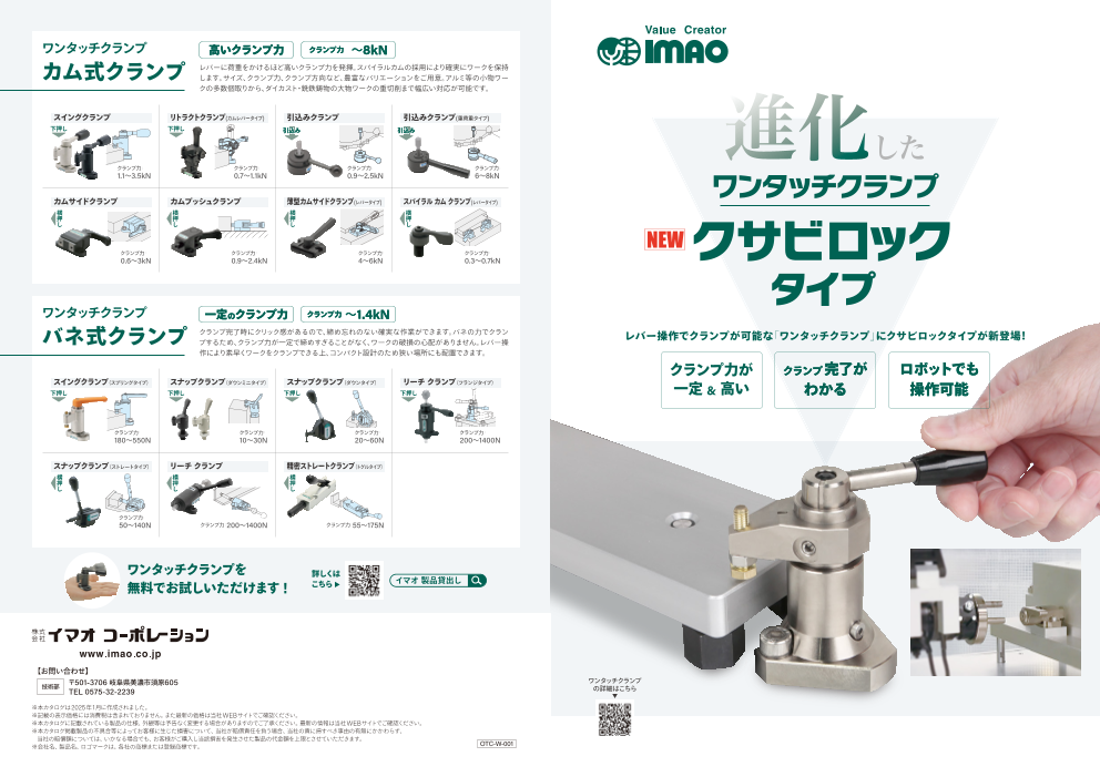 ワンタッチクランプはレバー操作でクランプが可能なメカニカルクランプです。 工具レスで操作できるためレンチやスパナ等の工具の管理負担を軽減できます。それによりワークの段取り時間が大幅に削減でき、作業性、生産性の向上に貢献します。 操作時間を大幅に短...