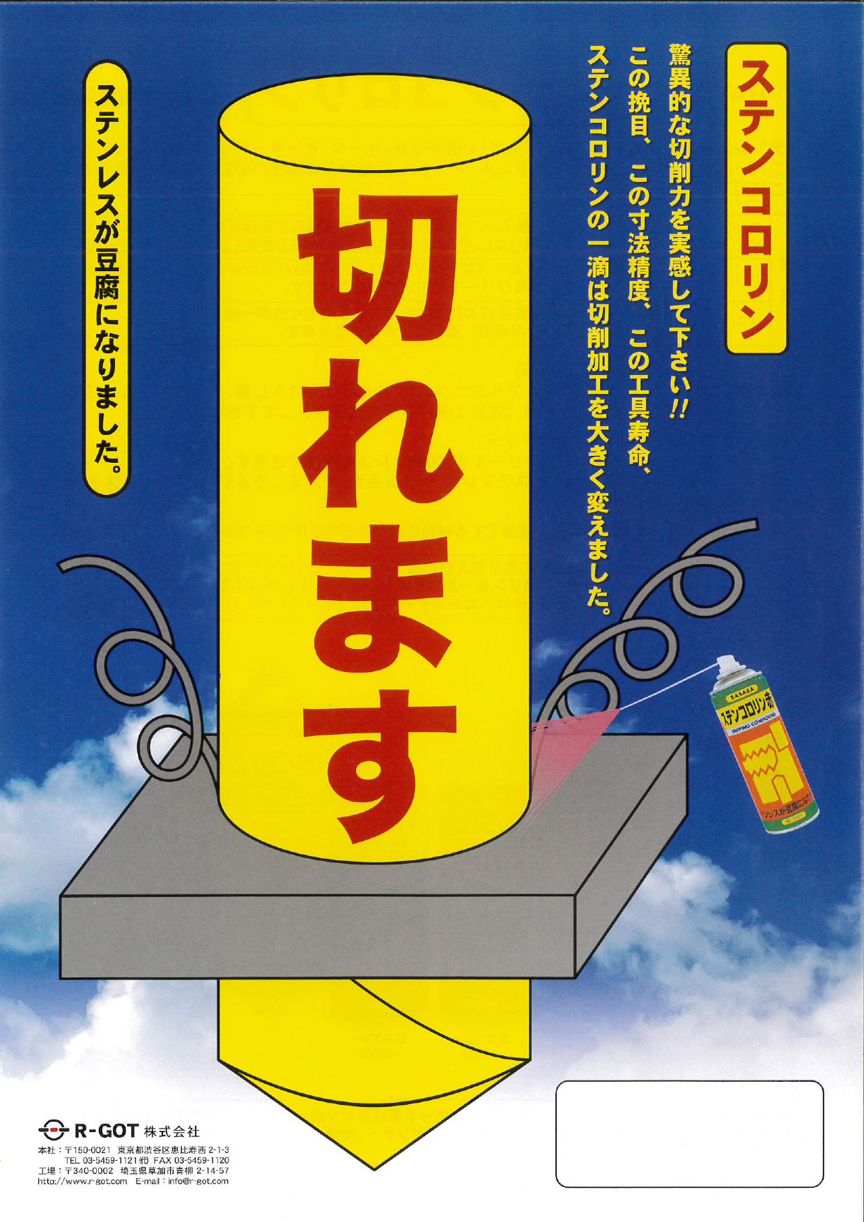 ステンレス等の加工困難な材料の穴あけ(小径ドリル、リーマ、 センタードリルを含む)、ねじ切り加工(タップ、ダイス、転造等)、 エンドミル、フライス、旋盤などの精度が必要な 各種金属切削加工にご使用ください。