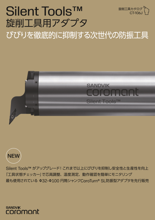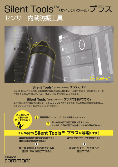 Silent Tools™プラスは、防振工具内部にセンサーを内蔵し、加工中の工具のびびり有無とその程度のリアルタイムモニタリングを可能にするソリュー ション で す 。 センサーにより取得されたデータは通信ユニットを通じてBluetooth信号の形で機...