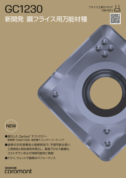 ●あらゆる被削材に対応 ・CoroDrill 860-GM(汎用) :φ3.0~16.0、L/D=3~8 ・CoroDrill 860-PM(鋼用) :φ3.0~20.0、L/D=3~5 φ3....