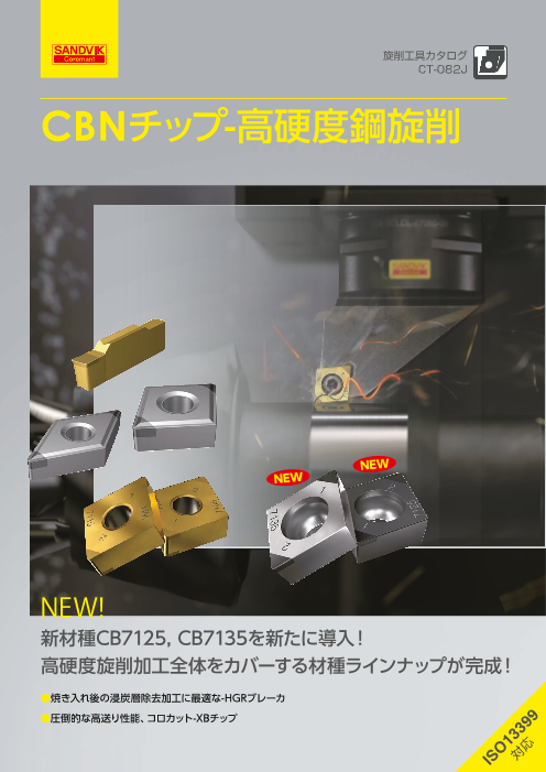 硬度がHRc48を超える高硬度鋼への旋削加工では、CBN(CubicBoronNitride)チップの使用が第一推奨です。サンドビック・コロマントでは、新たにCB7125,CB7135の新材種を導入し、高硬度旋削加工全体をカバーするライ...