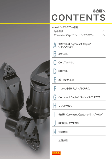 【掲載内容】 ◆旋削工具用 Coromant Capto(R) クランプホルダ ◆旋削工具 ◆CoroTurn(R) SL ◆回転工具 ◆ボーリング工具 ◆コロマントEH ミリングシステム ◆Coromant Capto(R) ヘ...