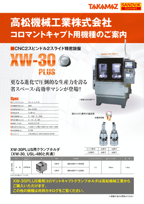 掲載内容 ・滝澤鉄工所の高効率工作機械 ・コロマントキャプト・クイックチェンジの特長 ・複合加工機 × コロマントキャプト - TMX-2000 ・クイックチェンジ機種別クランプホルダ - TMT-4500 - TMM-...