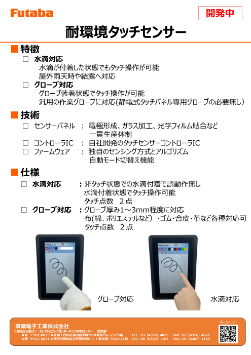 耐環境タッチセンサーの特長、弊社独自の技術や仕様について簡単にご紹介いたします。製品のより詳しいご説明、デモ機の貸出、お見積り依頼など、お気軽にお問い合わせください。