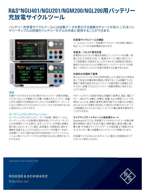 極めて精度が高く、過渡応答時間の短いR&S®NGU ソース・メジャー・ユニット(SMU)は、困難なアプリケーションへの挑戦に最適です。 特殊な電流計デザインにより1回の掃引でnAからAまでの電流ドレインを正確に測定するため、測定掃引を複数回行う必要があ...