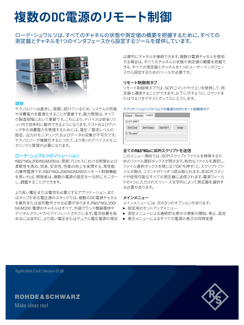 ローデ・シュワルツのDC電源およびR&S®LCX LCRメータ向けのイーサネット方式リモートサービス ※詳しくはPDF資料をご覧いただくか、お気軽にお問い合わせ下さい。