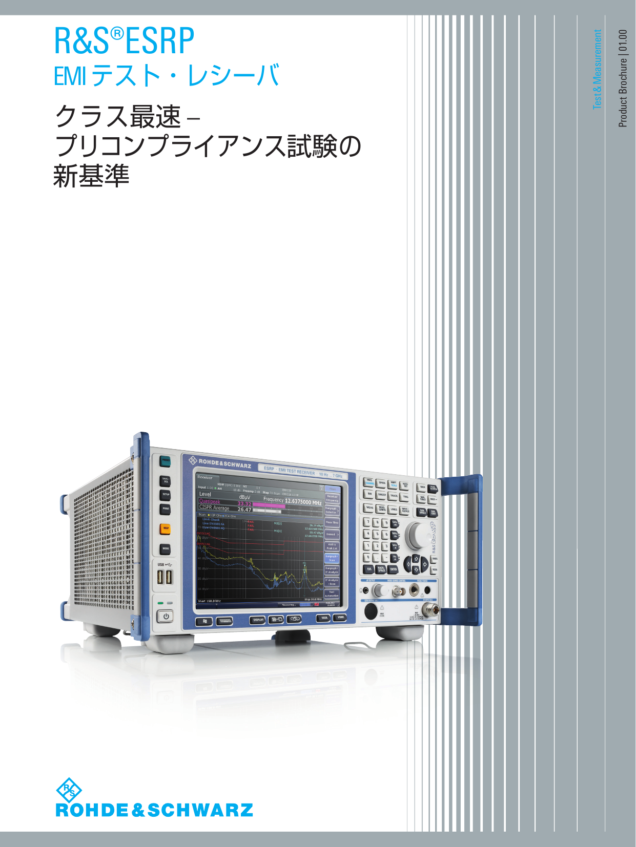 EMI テスト・レシーバ R&S ESRP は、プリコンプライアンス測定や認証試験の予備データを収集するために設計された EMIテスト・レシーバです。本機は、FFTベースのタイムドメイン・スキャンによって、10 Hz ~ 7 GHz の周波数範囲で電磁波...