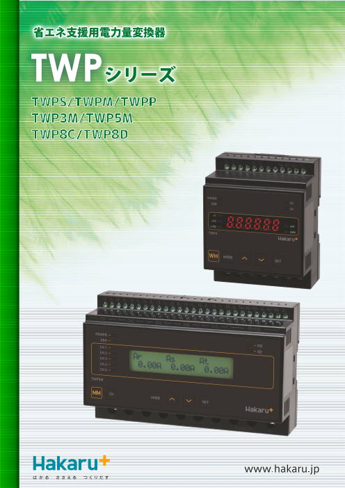 電流、電圧、電力、電力量、力率など、各種電力要素を計測。 パソコンソフトを使用して、事務所で簡単に電力の見える化! クランプCTで取り付けも簡単。 建屋ごと、フロアごと、設備ごとなどの電力監視に最適!
