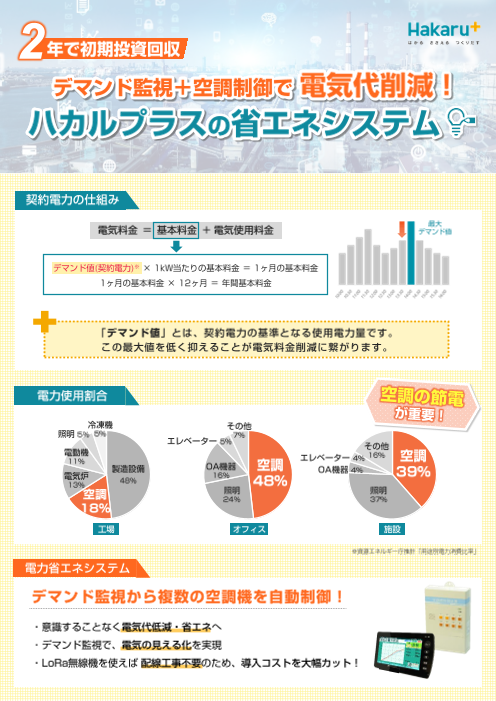 脱炭素に貢献する製品を3つの目的別にご紹介します。 ・工場全体の電力量を知りたい ・分電盤ごとの電力量を知りたい ・電気代を削減したい 【掲載製品】 ・電子式マルチメータ ・自動力率調整器 ・電力量変換器 ・デマンド監視装置、空調制御...